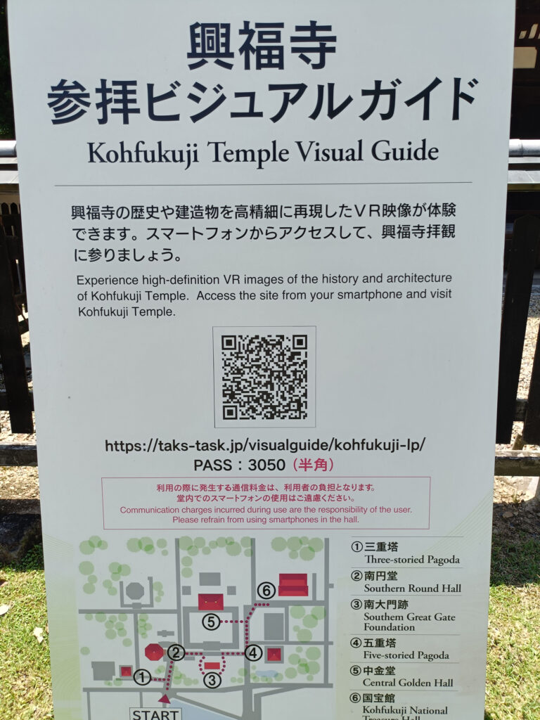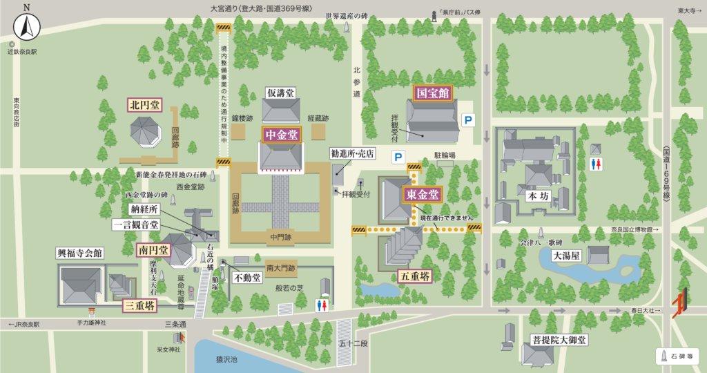 興福寺は下記の地図でおわかりになるかもしれませんが、広大な敷地になっています。約25,000m²の広さで東京ドーム1.75個分の広さとのこと。