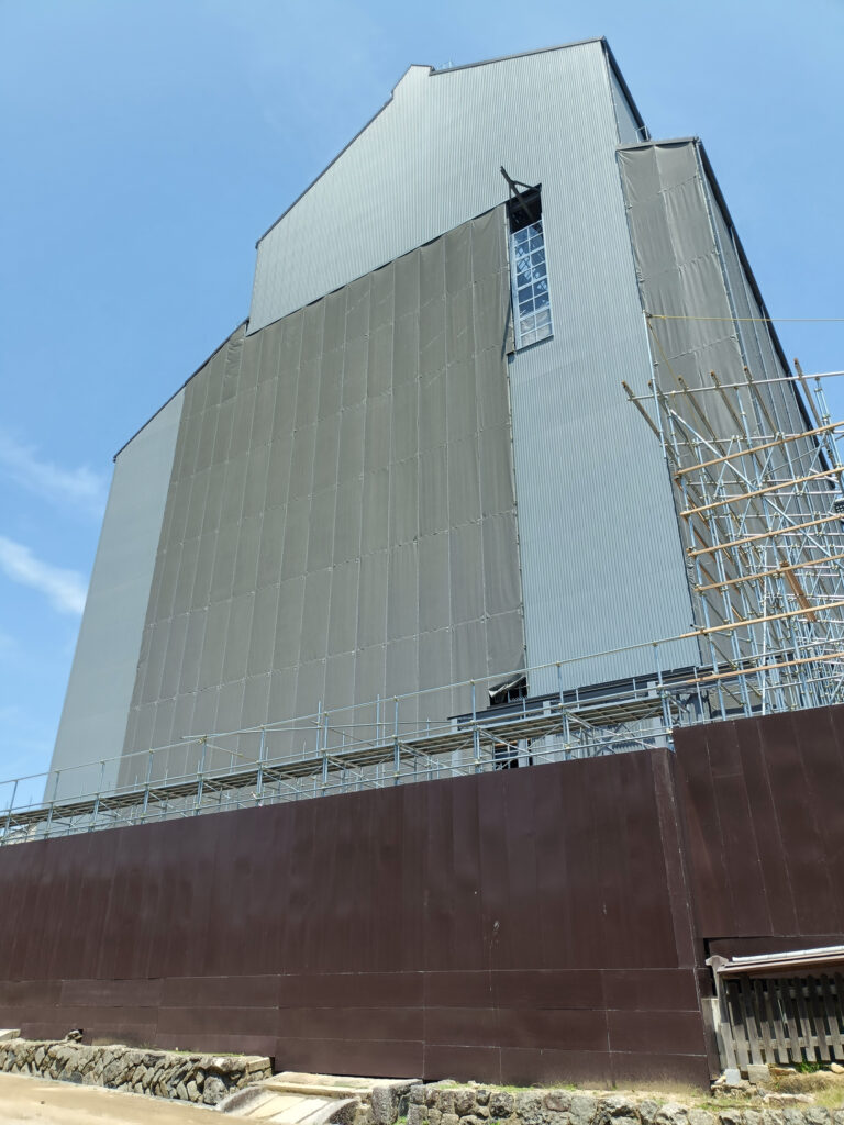 工事のため「素屋根(すやね)」と呼ばれる覆屋で覆われ、全くその姿を見ることはできませんでした。ただしその巨大な姿は、覆い越しに圧倒的なスケールを実感できますよ(^^)