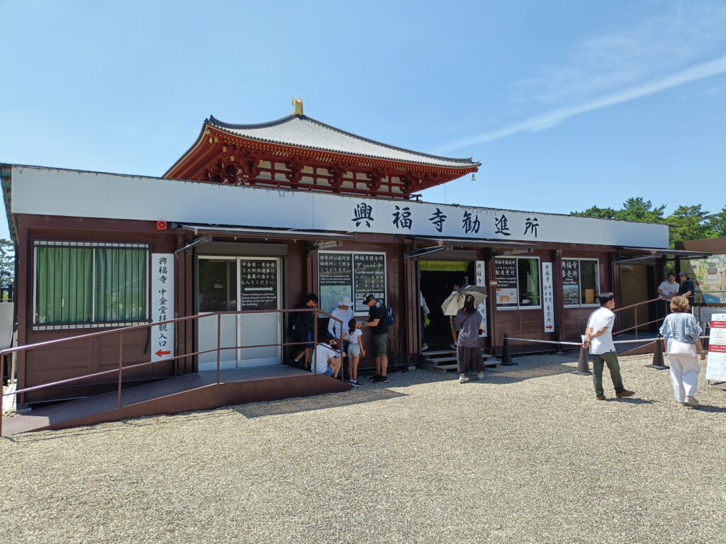ここでは、中金堂・東金堂・国宝館の拝観チケットを購入することができます。3か所共通券は1,600円で、興福寺の主要建造物を一度に拝観できるお得なセット。チケットは個別購入ももちろん可能ですが、三堂を巡ることで興福寺の歴史と信仰の流れをより深く感じられるため、共通券での拝観がおすすめです。