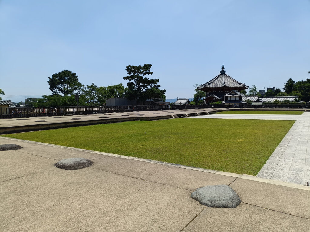 こちらは中金堂の中庭。中門跡と回廊跡の基礎石があり、当時の面影が浮かびます。