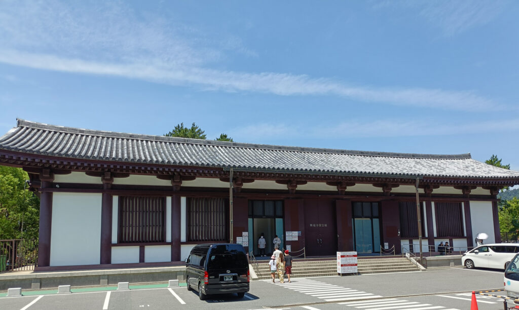 国宝館は昭和34年(1959年)に鉄筋コンクリート造りの耐火式宝物収蔵庫として建てられました。興福寺の歴史を伝える仏像彫刻や絵画、工芸品、典籍・古文書、歴史資料・考古遺物などが収蔵されています。これらを一般公開するために利便性を考慮して設計された建物です。入館料は大人900円、中高生800円、小学生500円(2025年現在)。