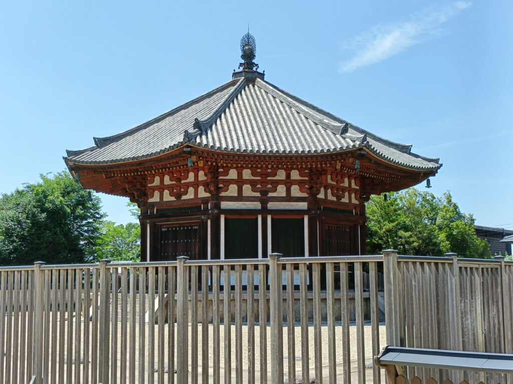 次に向かったのが「北円堂」です。三重塔と並び、興福寺で最も古い建築とされる北円堂は、日本に現存する八角円堂の中でも最も美しいと称される名堂です。八角形の端正な姿は、法隆寺夢殿の意匠を思わせ、創建当時の優雅さと荘厳さを今に伝えています。