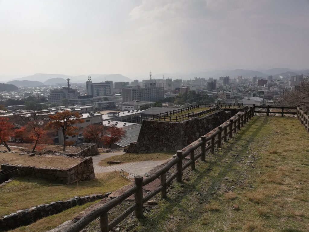 現在、天守や御殿などの建物は残っていませんが、復元された建造物や全国有数の珍しい石垣など、見どころは豊富にあります。また、城跡一帯は久松公園として整備され、春は桜の名所としても有名です。