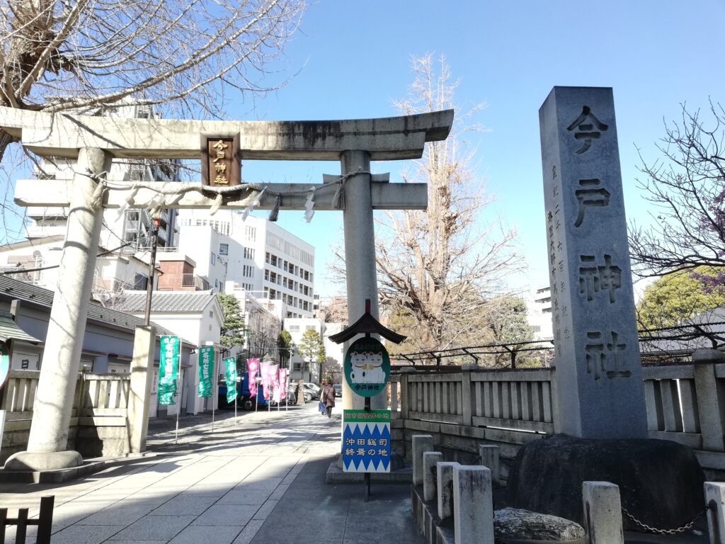 新選組隊士・永倉新八が記した「同志連名記」によれば、江戸へ引き上げた頃には沖田の病はかなり進んでおり、薩長軍の江戸入りを前に、総司を含む病人たちはここ今戸神社に収容されたとも伝えられており、こうした幕末の歴史とも静かにつながっている場所なのである。