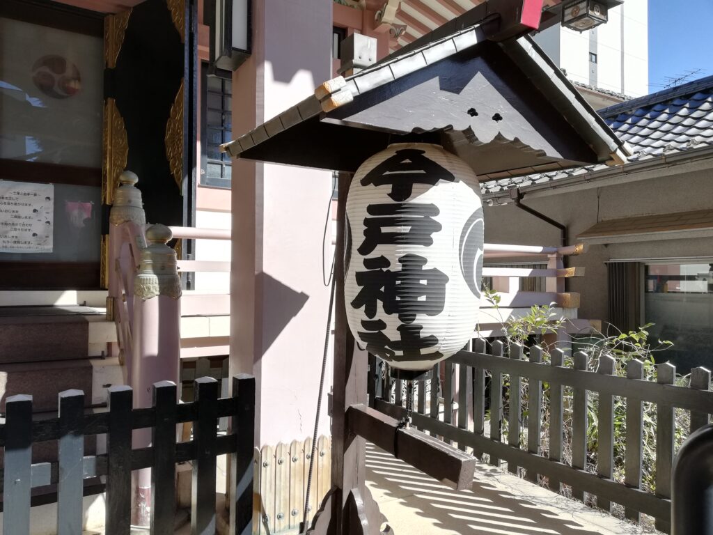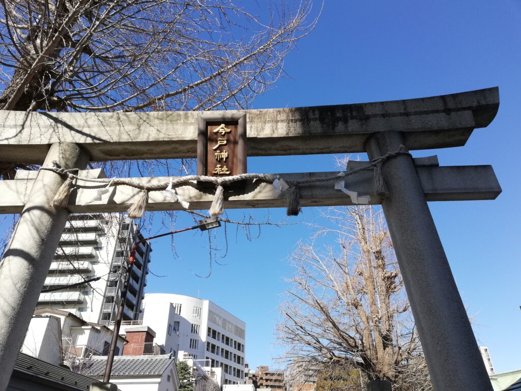 都道に面した東側の入口に立っているのが、今戸神社の一の鳥居。形は明神鳥居で、中央の扁額には「今戸神社」と記されている。境内に鳥居はこの一基のみで、参拝者を迎える象徴的な存在となっている。
