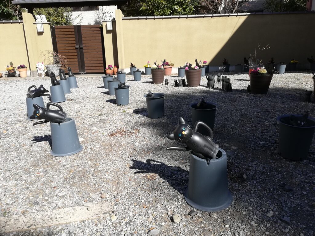 黒地に金縁の招き猫がちりばめられた、金運が上がりそうなデザインの御朱印帳