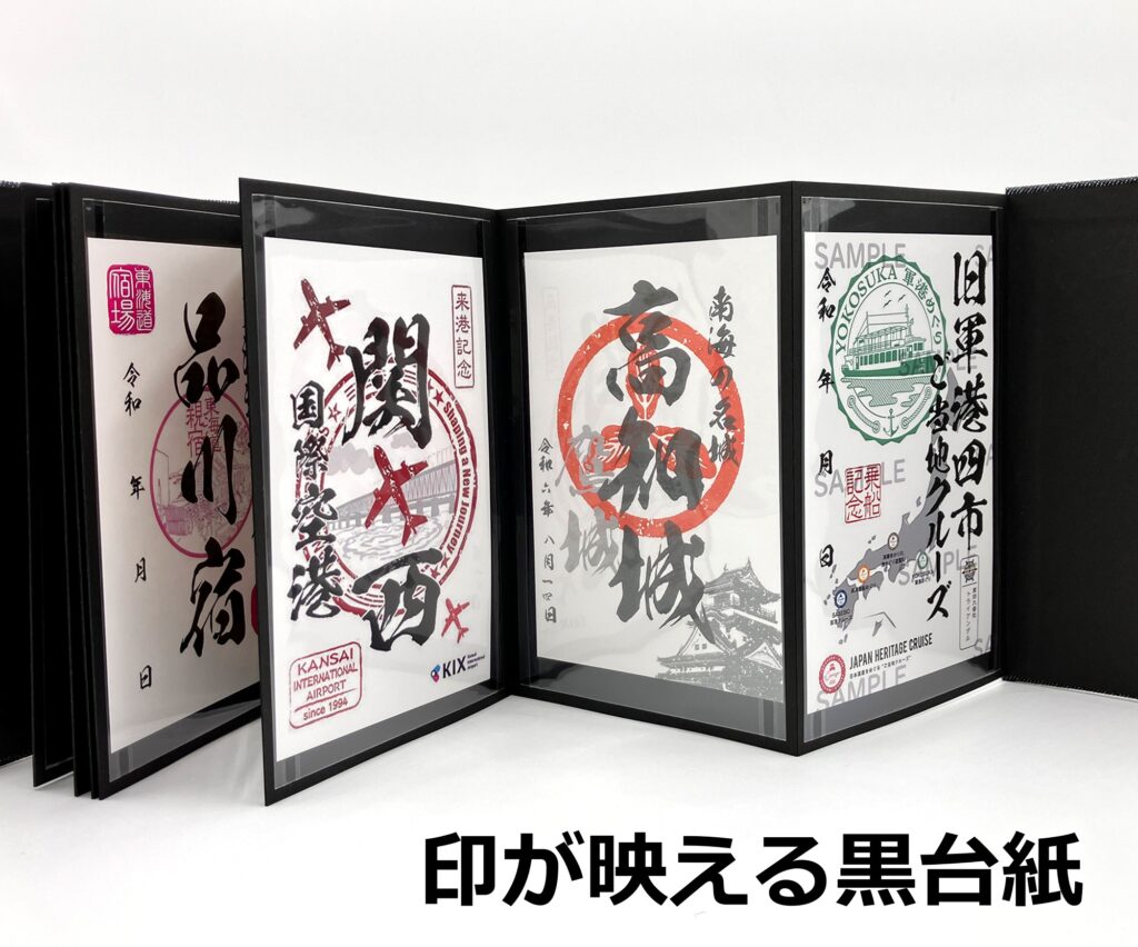 たとえば、あこがれて訪れたお城の御城印の隣に、その移動で乗った列車の御鉄印があり、その先で立ち寄った港の御船印が続く…。そんなふうに並べていくと、一冊そのものが「旅の記録」になっていきます。少し大げさに言えば、自分だけの旅のアルバムのようなものです。